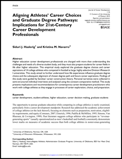 Haslerig, S. J. & Navarro, K. M. (2016). Aligning athletes’ career choices and graduate degree pathways: Implications for 21st century career development professionals. Journal of Career Development, 43(3), 211-226. Doi: 10.1177/0894845315597472