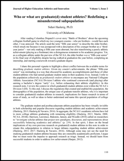 Haslerig, S. J. (2017). Who or what are graduate(d) student athletes? Interpreting a misunderstood subpopulation. Journal of Higher Education Athletics & Innovation, 1(2), 110-122.