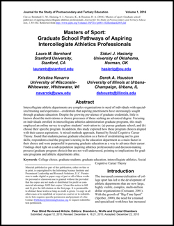 Bernhard, L. M., Haslerig, S. J., Navarro, K. M., & Houston, D. A. (2016). Masters of sport: Graduate school pathways of aspiring athletics professionals. Journal of Post-Secondary and Tertiary Education, 1, 85-102.